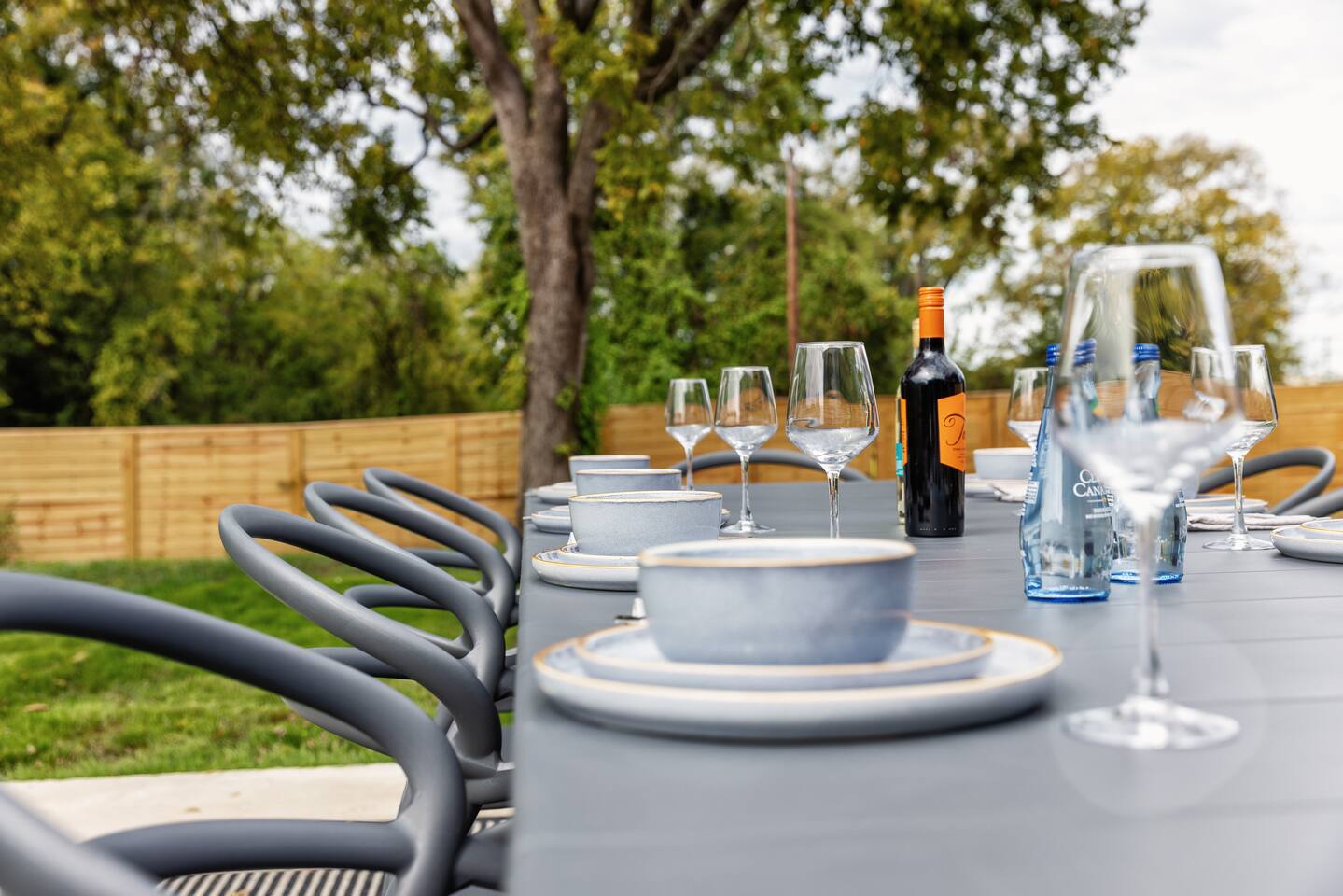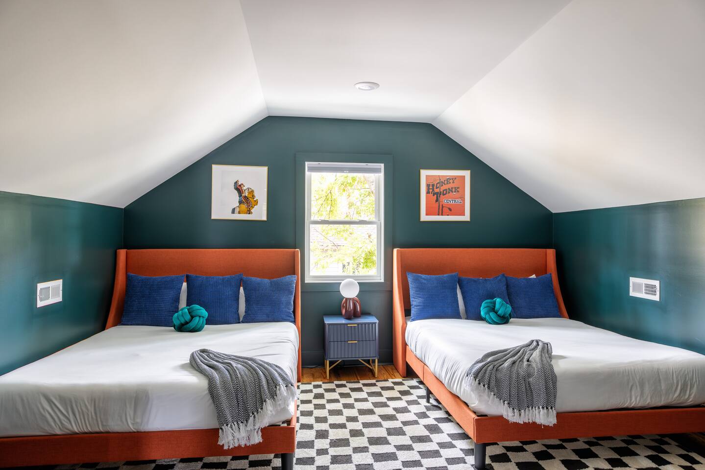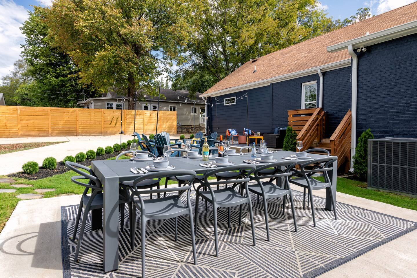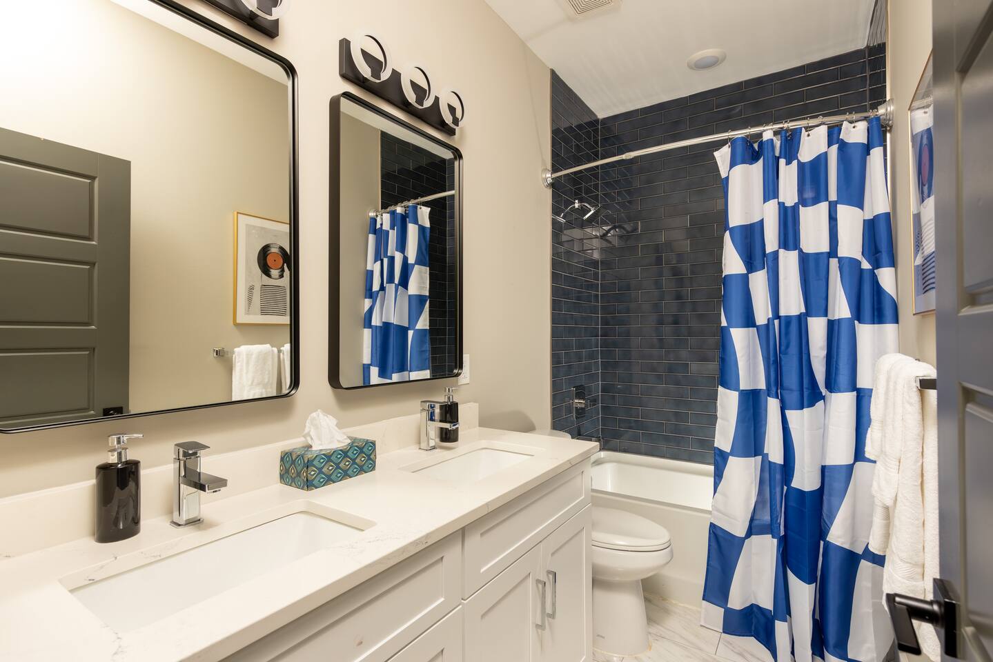 Property Highlights: - Located on 1/2 acre with ample space. - 4 bedrooms, 9 beds and 3 full bathrooms. - Living room is uniquely designed with a large L-shaped couch, dedicated bar and Smart TV. - Game room with 2 seating areas, pool table, skee-ball, foosball, ping pong, dartboard and dedicated bar area. - Fully-equipped kitchen featuring brand-new appliances and all of the essentials for cooking. Dual coffee pot and Keurig system. We provide K-pods and coffee filters. - Movie room with reclining seats, popcorn machine, HD projector, high-end sound system and karaoke machine. - Spacious backyard with a 7-person hot tub, 3 different seating areas, BBQ grill, fire pit and go-to lawn games (oversized Jenga, connect 4, cornhole and more). - Large driveway to accommodate 5 medium-sized vehicles. - High-speed internet with dedicated workspace in the master bedroom. - Full-sized washer and dryer with laundry detergent provided for your convenience. - Conveniently located and just a 10-minute drive from Nashville’s top attractions like Broadway, Five Points, Nissan Stadium, Country Music Hall of Fame, Pedestrian Bridge and Centennial Park. Sleeping Arrangements: - Primary Bedroom: California King Bed with renovated bathroom with Smart TV, dual sinks, dual shower and walk-in closet - Guest Bedroom 1: Two Queen Beds with walk-in closet, small seating area and walk-in closet - Guest Bedroom 2: Two Queen Beds with walk-in closet, small seating area and dresser - Guest Bedroom 3: Two Bunk Beds (Twin Over Twin and Full Over Full Quad Bunk Beds) with walk-in closet, Smart TV and dresser