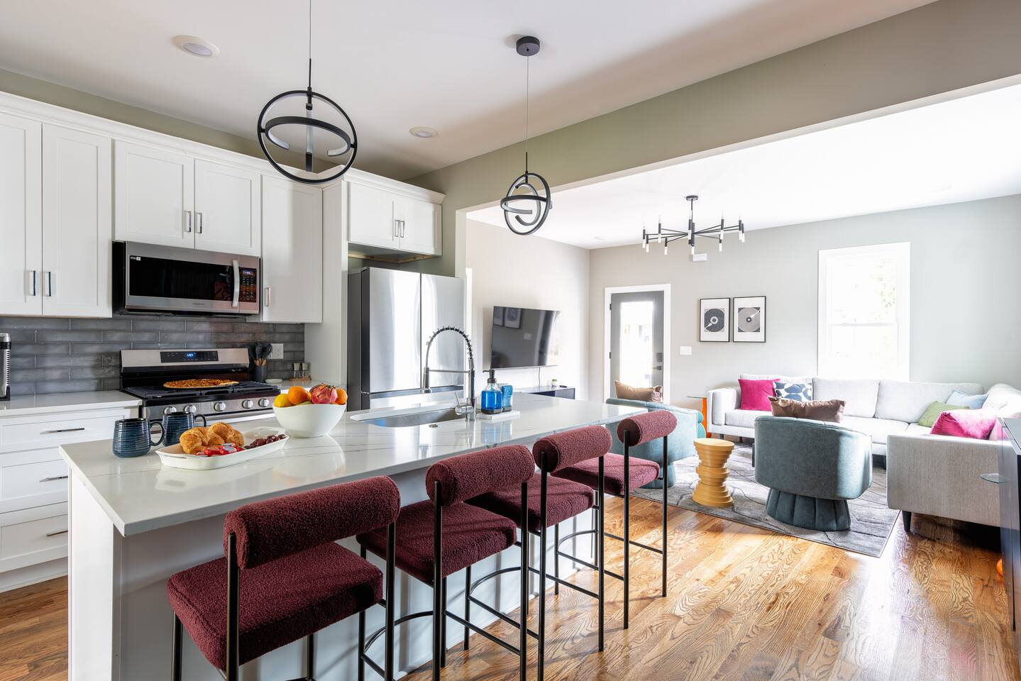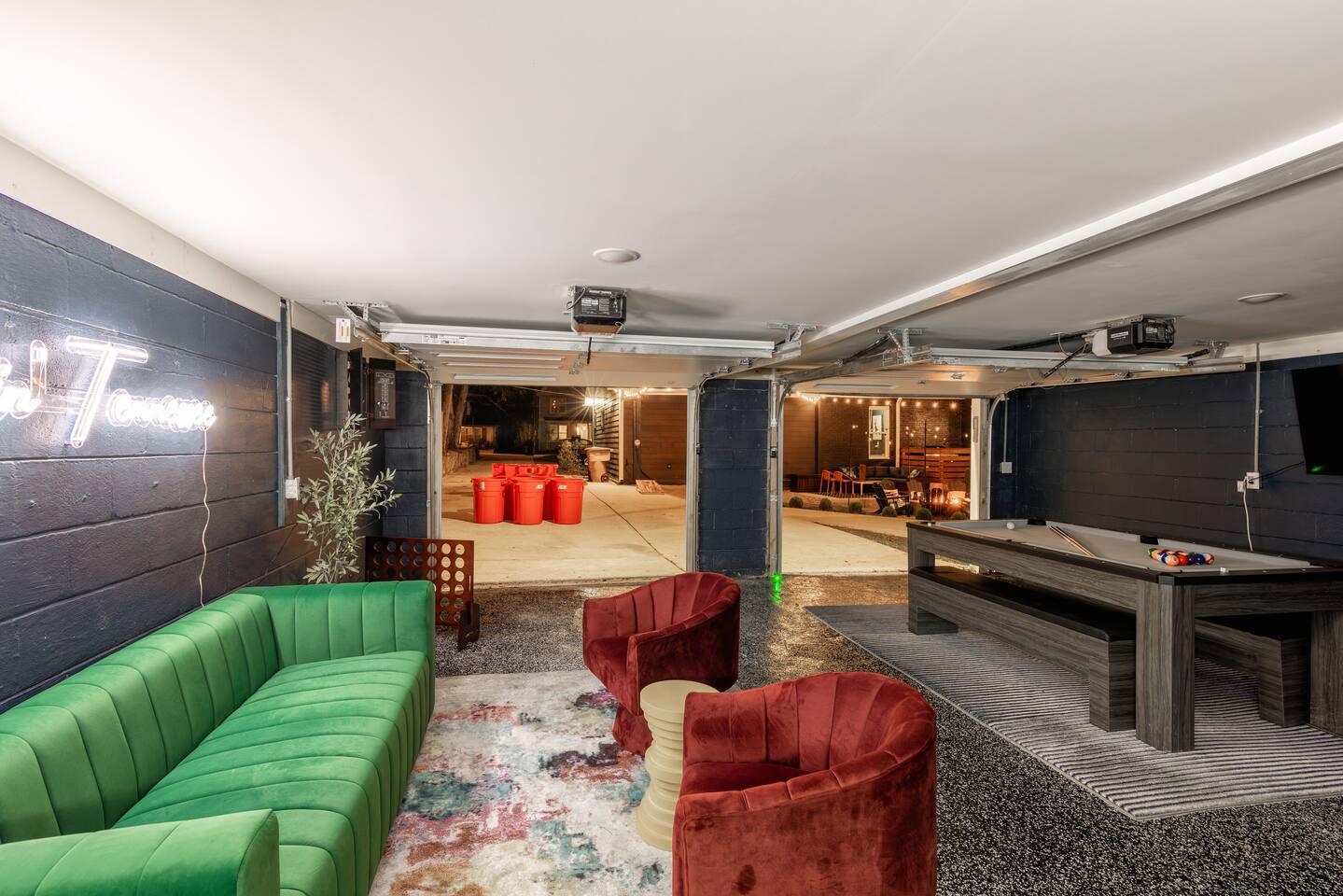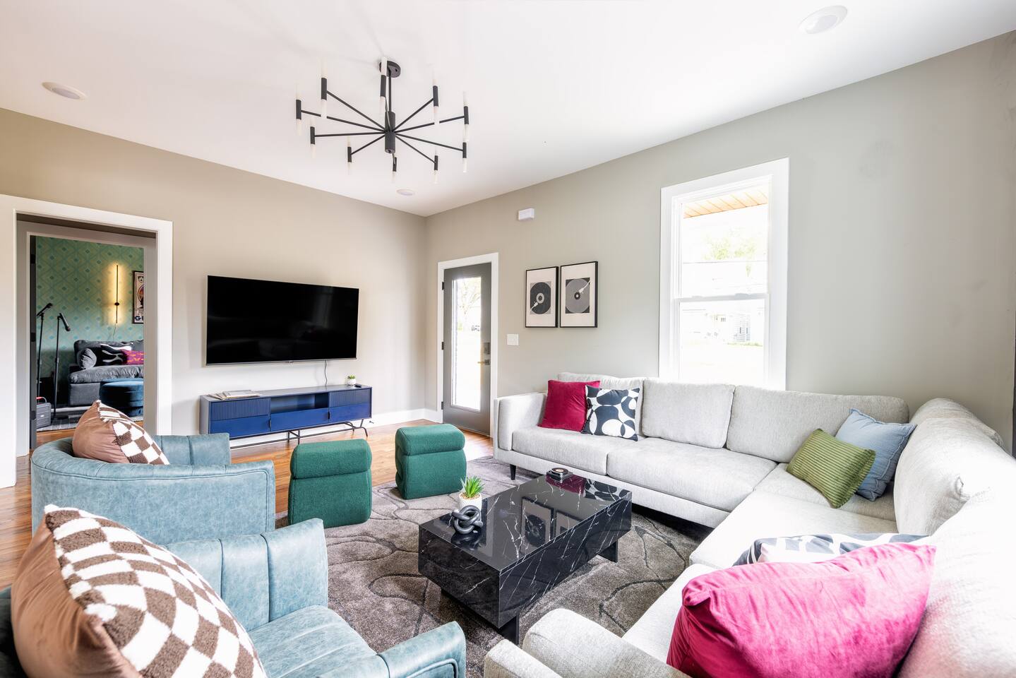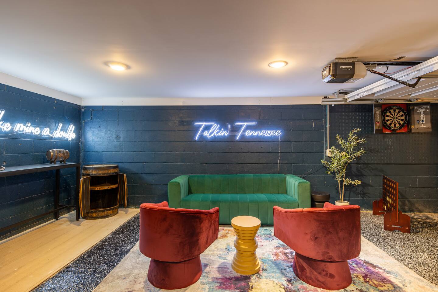 Discover this newly remodeled, professionally designed home, centrally located just minutes from downtown Nashville. Enjoy a bright, open living area, game room with a pool table and cozy movie room perfect for binge-watching. The large backyard is ideal for relaxing, barbecuing, playing lawn games or soaking in the hot tub. With modern amenities and a welcoming atmosphere, this home is perfect for families or groups looking to explore the vibrant downtown scene. Book your stay today!